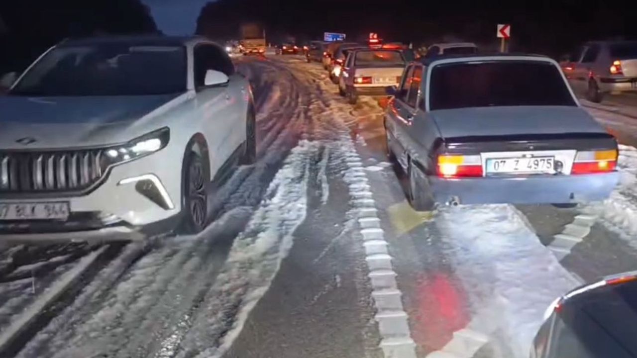 Yoğun dolu ve sağanak nedeniyle trafik durma noktasına geldi. Kayganlaşan yolda bazı araçlar kontrolden çıkarak yolun dışına savruldu.