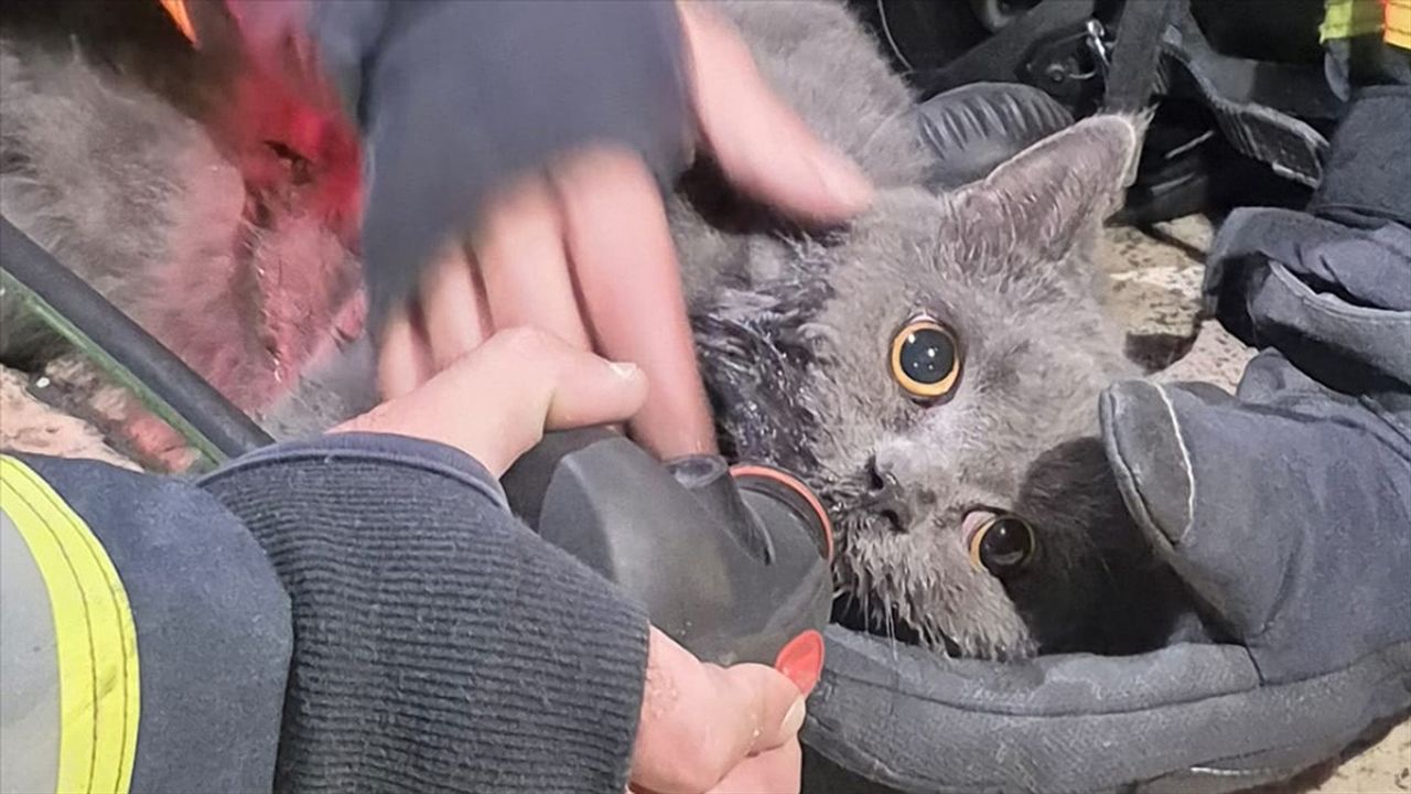 Ekipler kediye, kendi kullandıkları temiz hava solunum cihazından oksijen desteği sağladı. Kedi ekiplerin müdahalesinin ardından veterinere götürüldü.