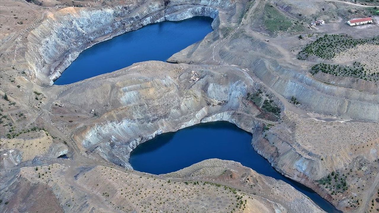 İçerisinde suyla gölü andıran çukurlar dronla görüntülendi.