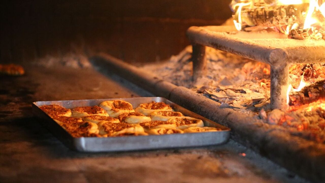 Daha sonra şekil verilerek tepsilere dizilen hamurun üzerine, kıymalı iç harcı konularak taş fırında pişiriliyor.