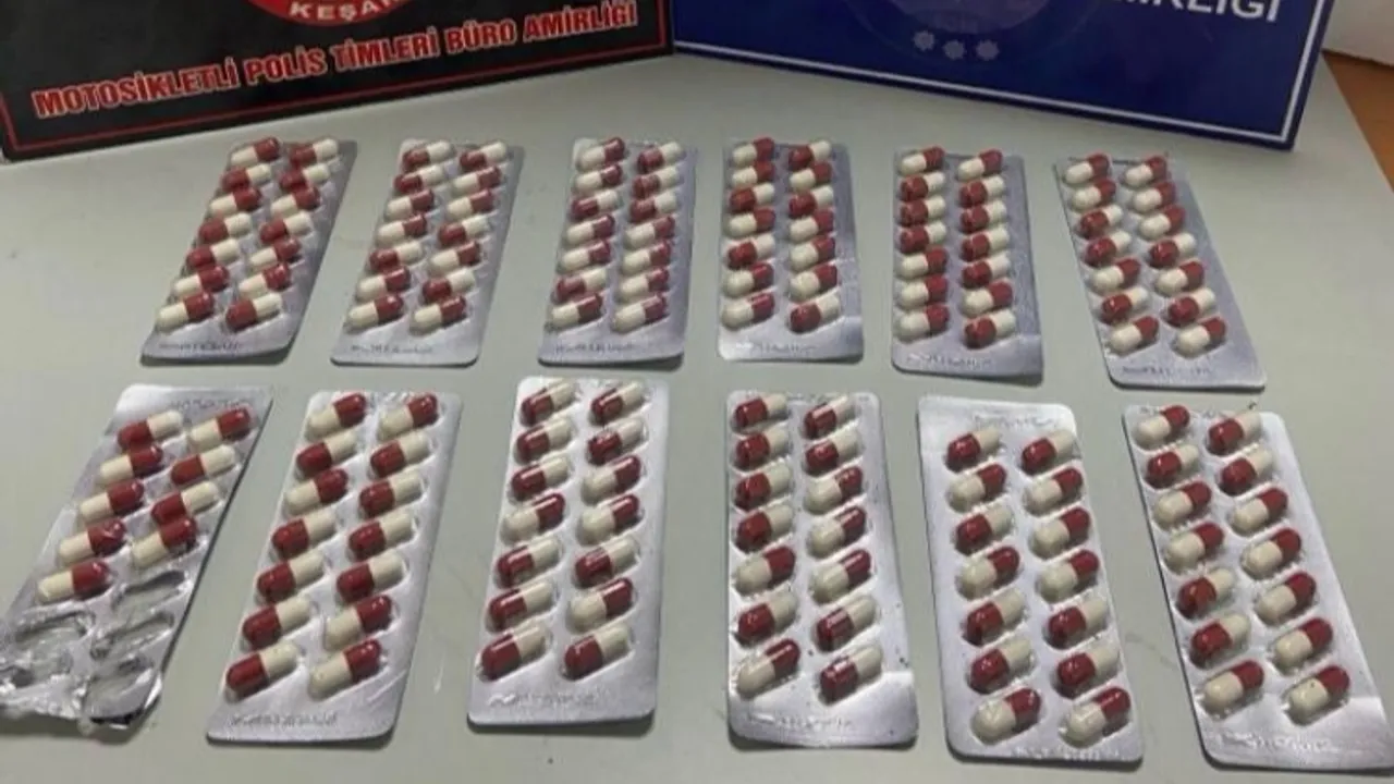 Edirne Keşan'da Emniyet Müdürlüğü'ne bağlı ekipler Yeni Mescit Mahallesi'nde durumundan şüphelenilerek durdurulan bir şahsın elindeki poşette 163 adet sentetik ecza ele geçirdi.Selçuk GEZER / EDİRNE (İGFA) - Edirne Keşan'da alınan bilgiye göre Yeni Mescit Mahallesi Kayalıdere Sokak’ta durumundan şüphelenilen S.C. isimli şahsı durduran Emniyet Müdürlüğü'ne bağlı ekipler, şüphelinin elindeki siyah poşette arama yaptı. Yapılan incelemede, 163 adet sentetik ecza olarak tabir edilen uyuşturucu madde olduğu değerlendirilen haplar ele geçirildi.