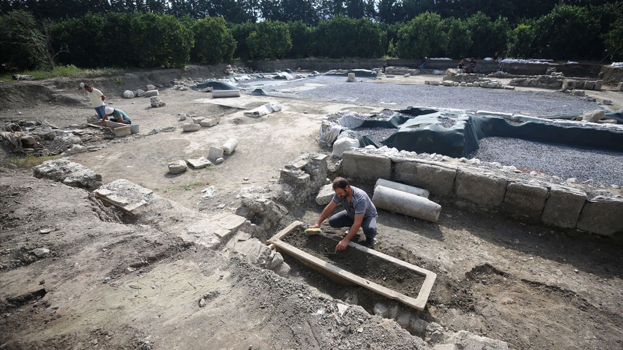Arsuz ilçesinde portakal bahçesinde bulunan 6. yüzyıla ait Kutsal Havariler Kilisesi'nde sürdürülen sezon kazısında mezar odaları bulundu.