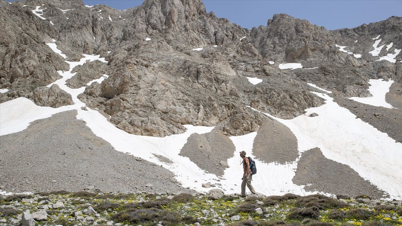 Kıştan kalma manzaralarTurlarla rotalarını bölgeye çeviren doğaseverler, zorlu patikalarda saatlerce yol yürüyüp yazın ortasında kıştan kalma manzaraları görüyor.