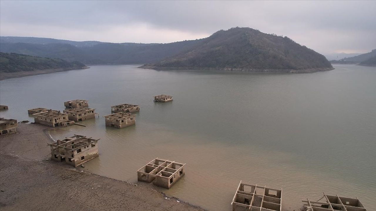 ZONGULDAK (AA) - Ova köyü Kızlar Çayı üzerine inşa edilen 36 milyon metreküp kapasiteli Kızılcapınar Barajı'nda suların azalmasıyla terk edilmiş yapılar ortaya çıkarken, su seviyesi 100 kotunda bulunuyor.
