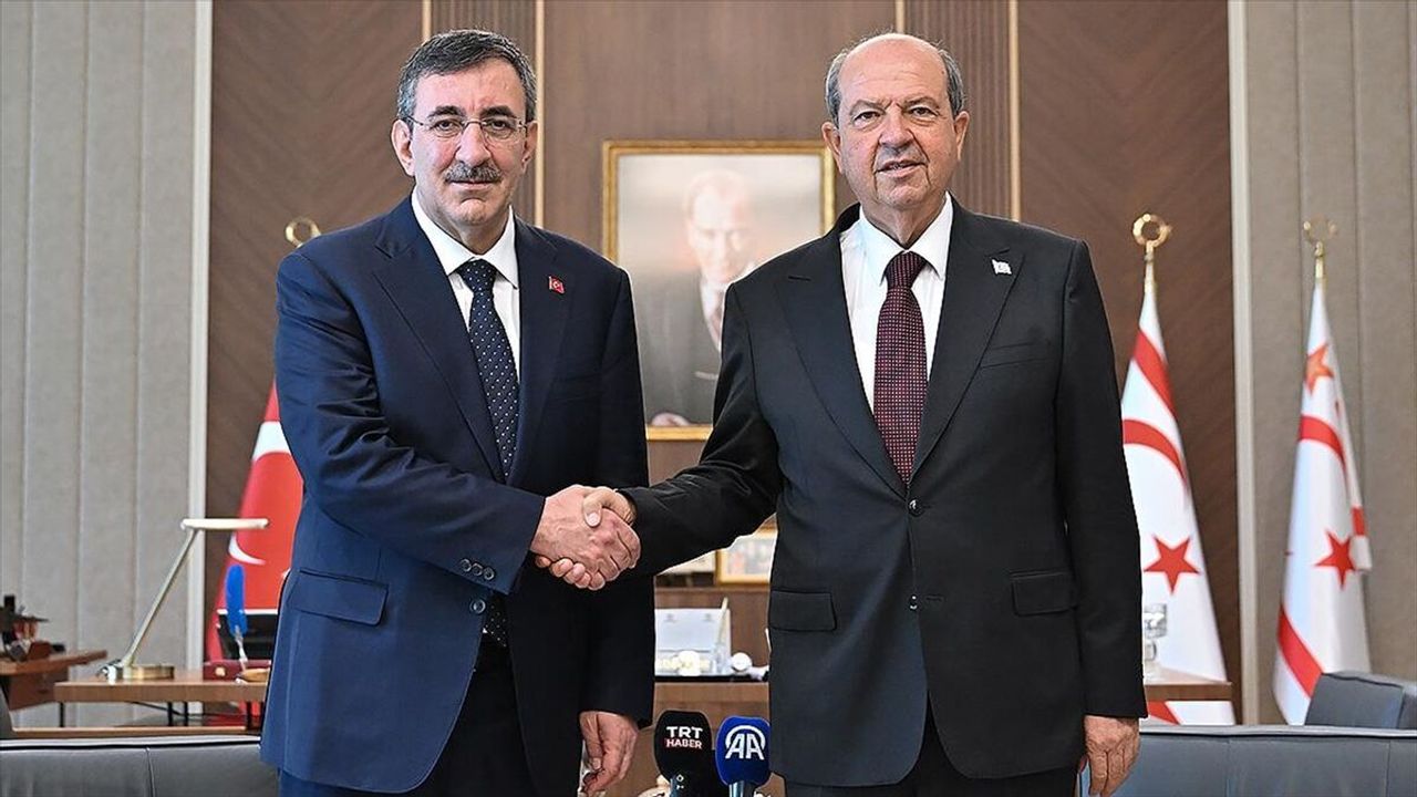 LEFKOŞA (AA) - Kuzey Kıbrıs Türk Cumhuriyeti (KKTC) Cumhurbaşkanı Ersin Tatar, Türkiye Cumhurbaşkanı Yardımcısı Cevdet Yılmaz'ı KKTC Cumhurbaşkanlığı Yerleşkesindeki ofisinde kabul etti.