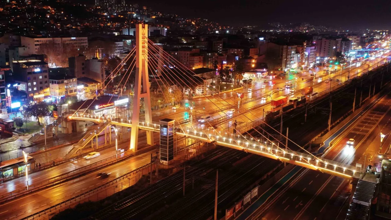 Önemli günlerde renk ve ışık gösterileriyle aydınlatılan üst geçitler bu kez kadına şiddete karşı turuncu ışıkla aydınlatıldı.KOCAELİ (İGFA) - Kocaeli Büyükşehir Belediyesi, tüm dünyada kutlanan “25 Kasım Kadına Şiddete Karşı Mücadele ve Uluslararası Dayanışma Günü’ne” şehrin sembol yapılarından olan üst geçitleri turuncu renkle aydınlatarak destek verdi.