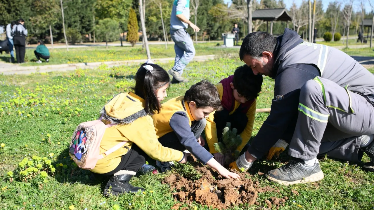 Öğretmenleri ve velileriyle birlikte mesire alanına gelen öğrenciler, Çayırova Belediyesi Park ve Bahçeler Müdürlüğü ekiplerinin kendileri için hazır ettiği alanlara çam ağacı fidanı ekti.