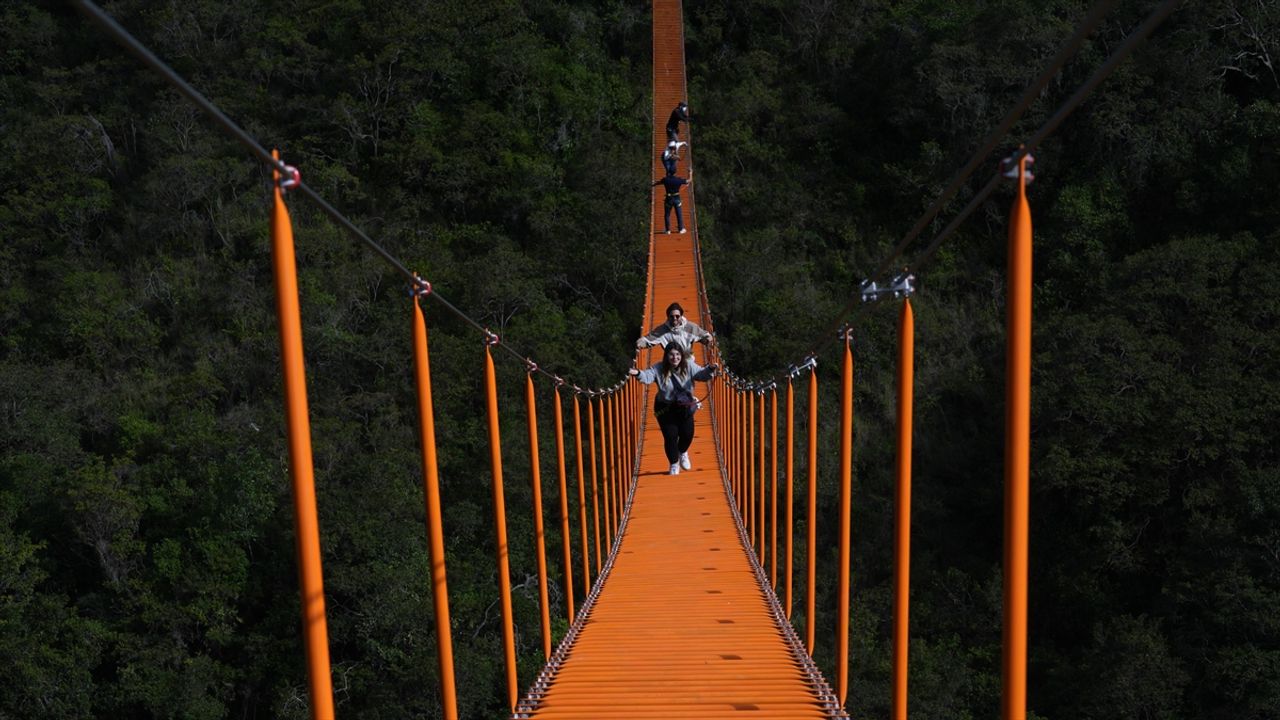 BOYACA (AA) - Boyaca yönetim bölgesine bağlı Santa Sofia kasabasında, El Hayal Ekolojik Parkı'nın kalbinde yer alan bu devasa asma köprüler, hem mühendisliğiyle hem de manzarasıyla ziyaretçilerin ilgisini çekiyor.