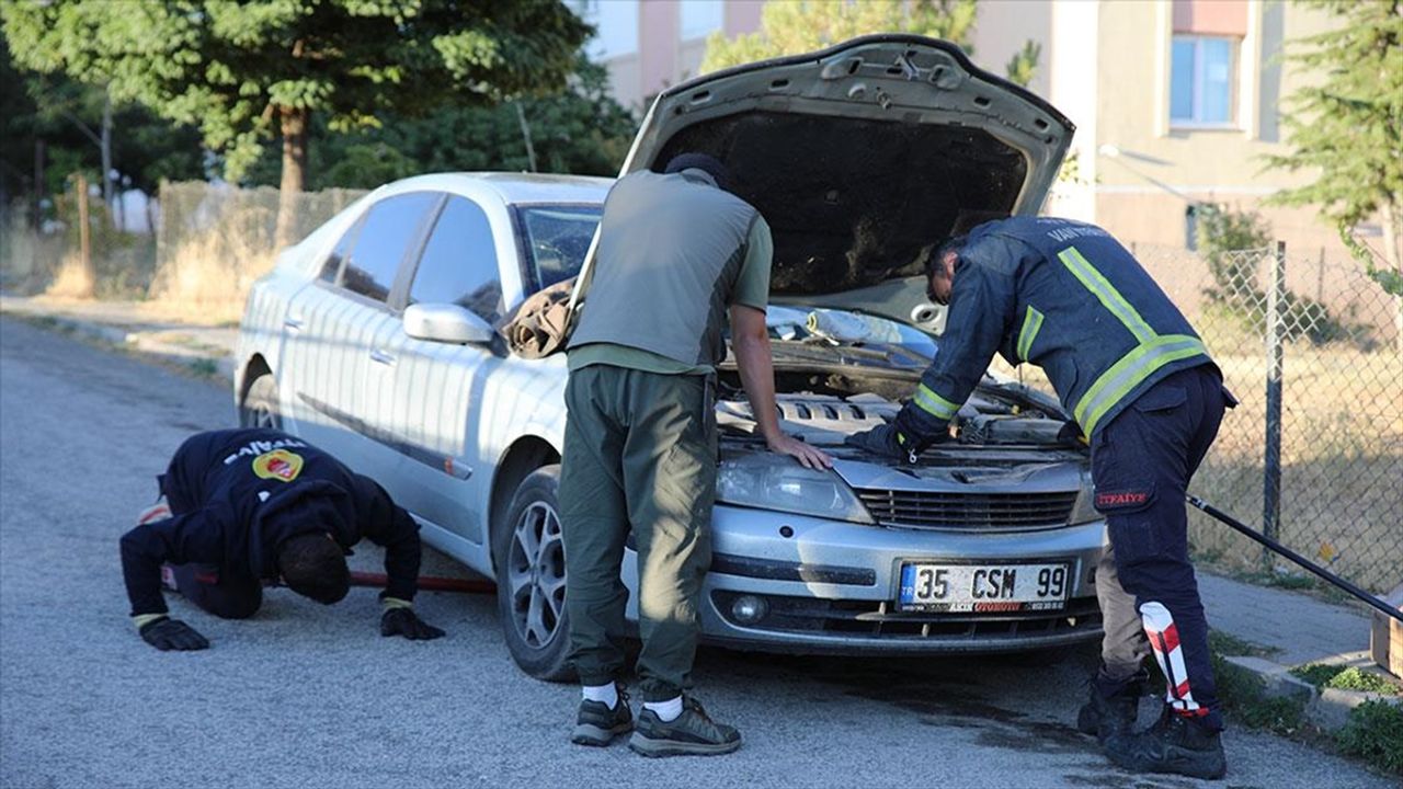 Deniz Çakır, su samurunun köpeklerden kaçarak önce otomobilin altına kaçtığını daha sonra da kaputa girdiğini söyledi.