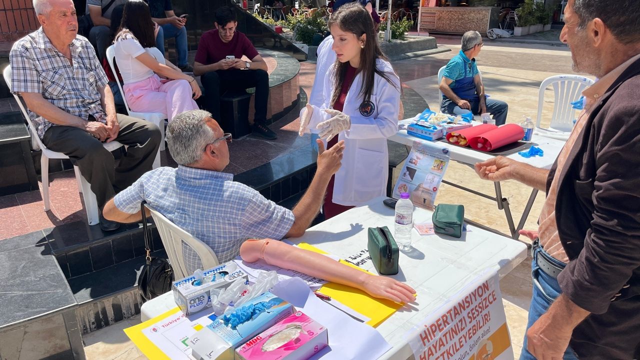 "Hemşirelik Haftası" dolayısıyla Cumhuriyet Meydanı'nda kurulan stantla, hemşire adayları kent sakinlerinin şeker, tansiyon ve kilo ölçümünü yaparak, sağlıkla ilgili temel bilgi paylaşımında bulundu.