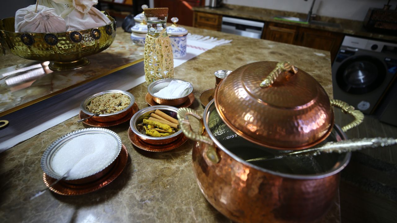 ADANA (AA) - YAKUP SAĞLAM - Osmanlı mutfağına özgü lohusa şerbeti 'kaynar' yapımı, Adana Olgunlaşma Enstitüsü Kültür Sanat Merkezinin usta öğreticileri tarafından gelecek nesillere aktarılıyor.