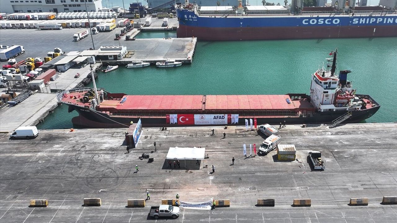 Lübnan'da İsrail saldırıları nedeniyle yerinden edilen yüz binlerce kişi için AFAD ve Türk Kızılay işbirliğinde başlatılan çalışmalar kapsamında hazırlanan 7 bin 200 çadır, 22 bin battaniye, 12 bin gıda kolisi ve 1000 hijyen kolisi olmak üzere 730 tonluk insani yardım malzemesi Mersin Uluslararası Limanı'ndan gemiye yüklendi.