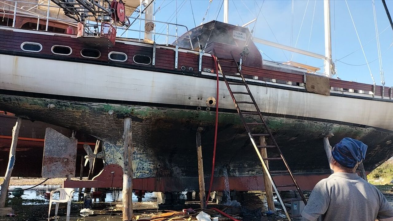 Örnek Mahallesi Kum mevkisindeki tersanede bulunan gulet tipi gezi teknesinde henüz belirlenemeyen nedenle yangın çıktı.