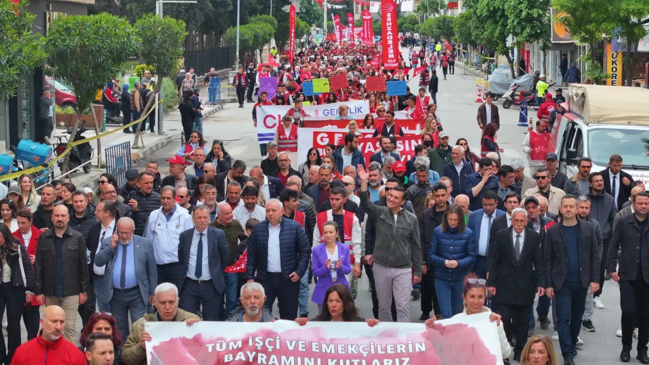 Manisa Büyükşehir Belediye Başkanı Ferdi Zeyrek, 1 Mayıs Emek ve Dayanışma Günü'nde sendikalar, işçiler ve vatandaşlarla birlikte kortej yürüyüşüne katılarak Cumhuriyet Meydanı’nda halka seslendi.MANİSA (İGFA)  - 1 Mayıs Emek ve Dayanışma Günü kapsamında, Manisa’da yürüyüş düzenlendi. İşçiler, sendika temsilcileri, siyasi partiler ve sivil toplum kuruluşlarının temsilcileri ile birlikte Sultan Camii’nden Cumhuriyet Meydanı’na yürüyüş boyunca sloganlar atarak korteje destek veren Başkan Zeyrek’e, CHP Manisa İl Başkanı İlksen Özalper, CHP Manisa Milletvekili Ahmet Vehbi Bakırlıoğlu, Şehzadeler Belediye Başkanı Gülşah Durbay, Yunusemre Belediye Başkanı Semih Balaban ve çok sayıda vatandaş da eşlik etti.