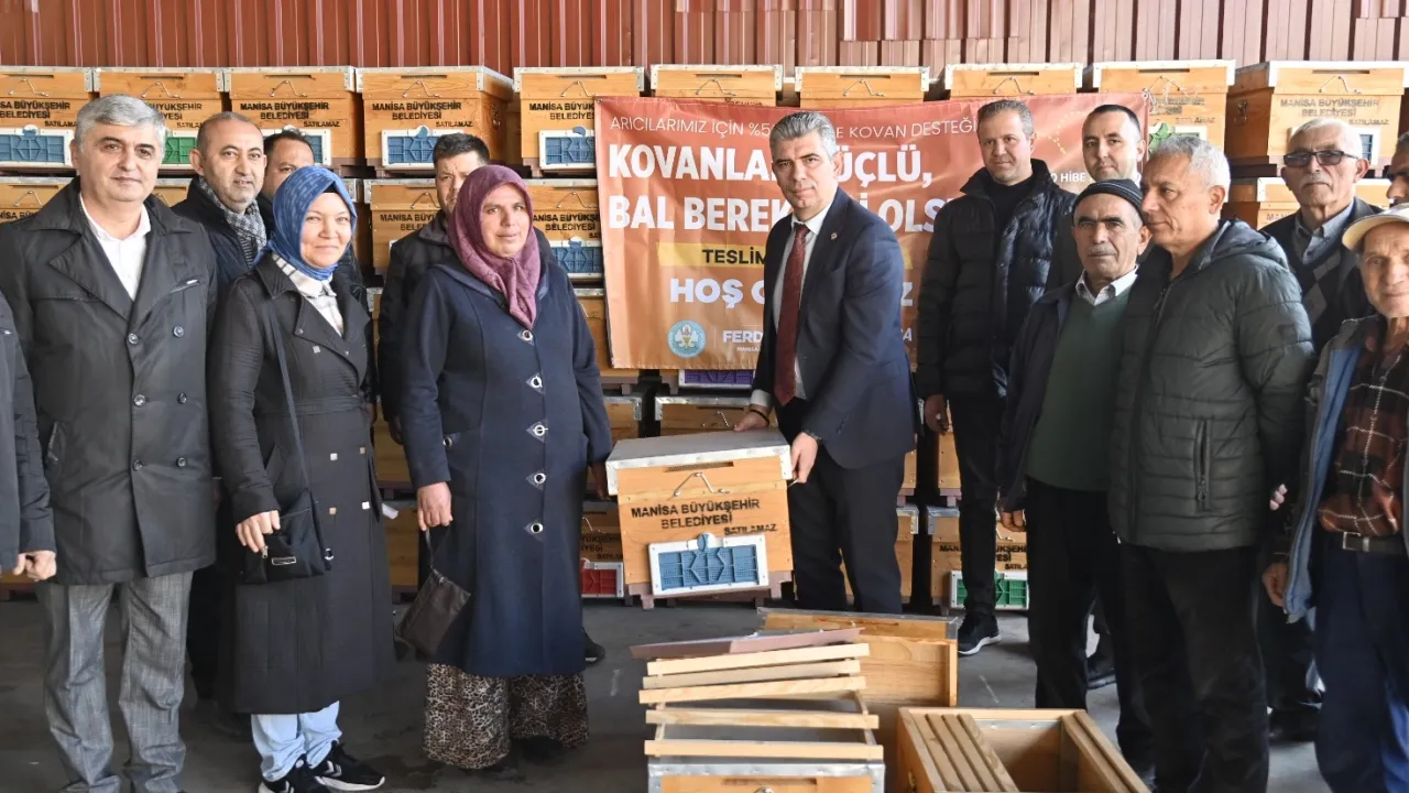 Manisa Büyükşehir Belediyesi, sosyal belediyecilik anlayışıyla üreticilere destek olmaya devam ediyor. Arı üreticilerine yüzde 50 hibe desteği ile kovan desteğinde bulunan Manisa Büyükşehir Belediyesi, Kırkağaç ilçesinde 220, Soma ilçesinde ise 193 kovanı, düzenlenen törenle arı üreticilerine teslim etti.MANİSA (İGFA) - Manisa Büyükşehir Belediyesi, sosyal belediyecilik hizmetleri ile üreticilere desteğini sürdürüyor. Arıcılık Kayıt Sistemi’ne kayıtlı en az 30 en fazla 120 kovana sahip arı üreticilerine yüzde 50 hibeli Langstroth tipi kovan desteğinde bulunan Manisa Büyükşehir Belediyesi, kovanları üreticilere teslim etti.