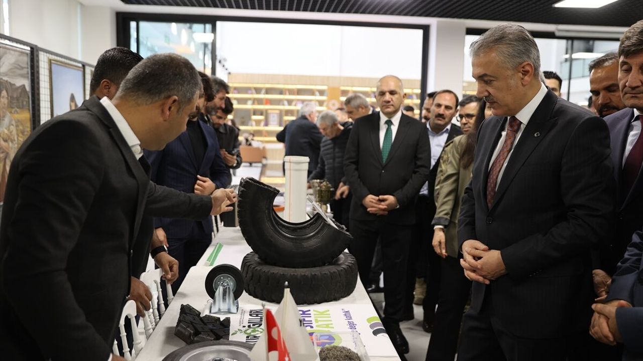 Vali ve Büyükşehir Belediyesi Başkan Vekili Tuncay Akkoyun, Büyükşehir Belediyesi İklim Değişikliği ve Sıfır Atık Daire Başkanlığı, kamu kurumları ve geri dönüşüm çalışmaları yapan bazı şirketler ile öğrencilerin atıklardan yaptığı 45 eser ile 35 tablonun yer aldığı sergiyi gezdi.