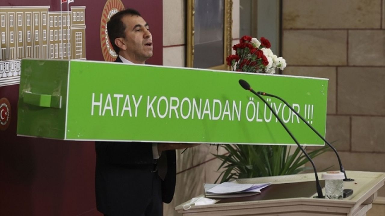 CHP'li Topal, Meclis'te Hatay'daki Kovid-19 vakalarının artışına tabutla dikkati çekti.