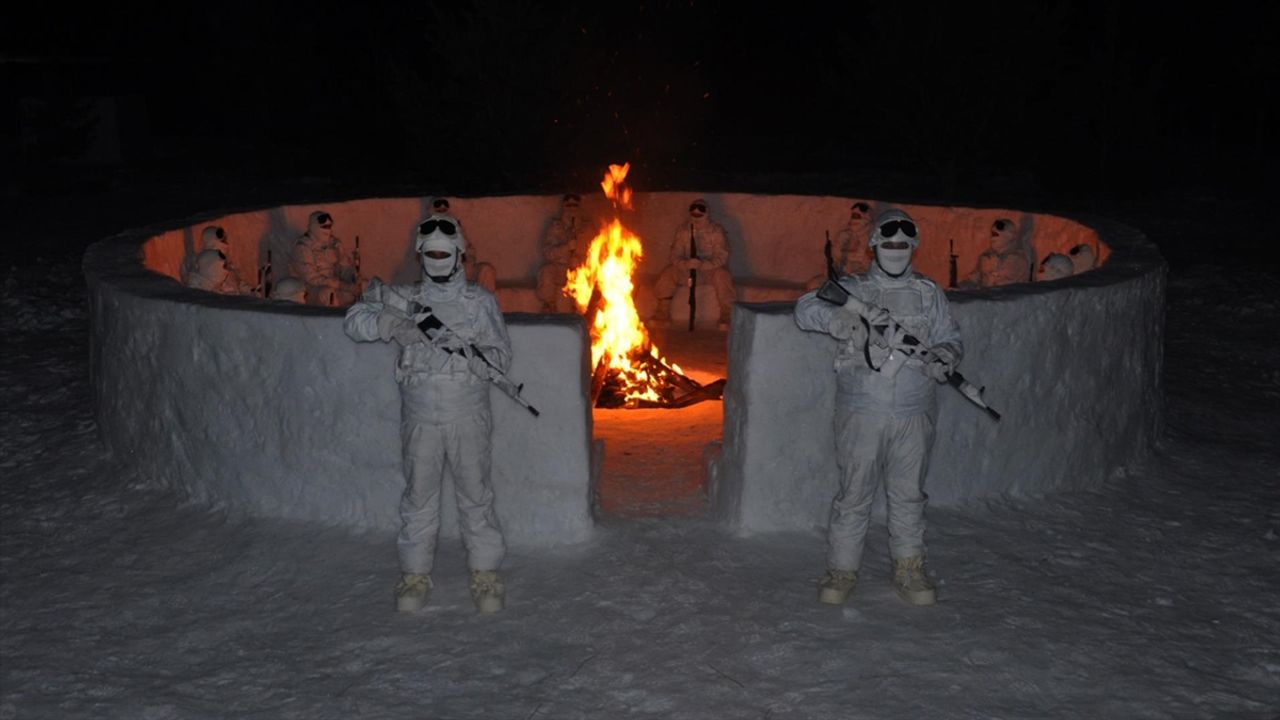 ANKARA (AA) - Bakanlığın NSosyal hesabından yapılan paylaşımda, 'En zorlu şartlarda bile eğitime devam. Kara Kuvvetleri Komutanlığımızdan ve Deniz Kuvvetleri Komutanlığımızdan personelin katılımıyla Kars'ta konuşlu Derin Kar ve Şiddetli Soğuklarda Muharebe Eğitim Merkezi Komutanlığımızda '18'inci Dönem Barınma ve Çığ Kursu' icra edildi.' ifadeleri kullanıldı.