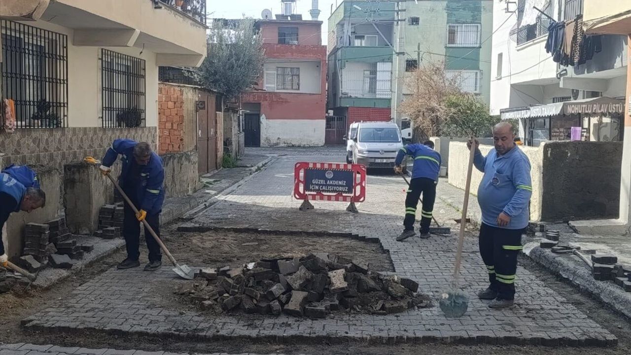 MERSİN (AA) - Mersin'in Akdeniz ilçesinde yol ve kaldırımlarda belediye ekiplerince yenileme çalışması yürütülüyor.