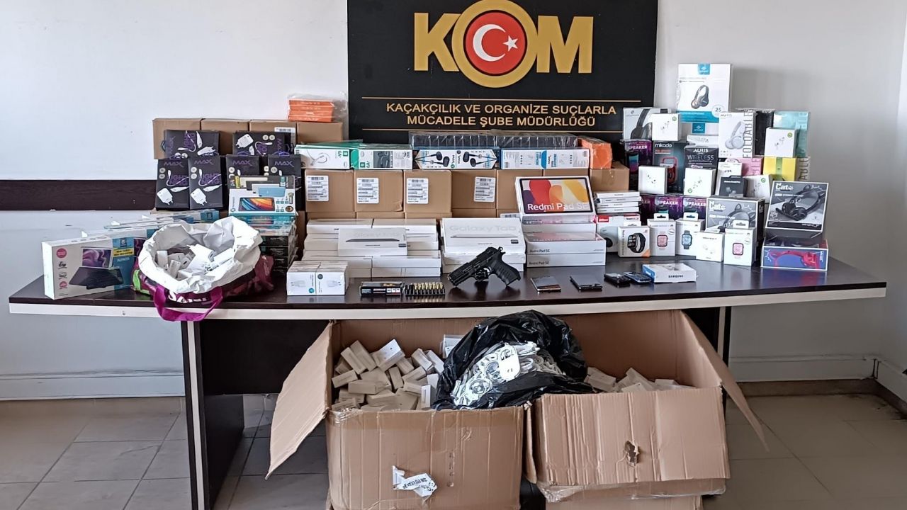 Şüphelilerin evleri, iş yeri ve depolarındaki aramada 14 gümrük kaçağı cep telefonu, 46 tablet, 6 akıllı saat, 765 şarj cihazı adaptörü, 8 müzik kutusu, 148 cep telefonu kılıfı, 5 telefon bataryası, güvenlik kamerası, ruhsatsız tabanca ve 2 milyon lira ele geçirildi.