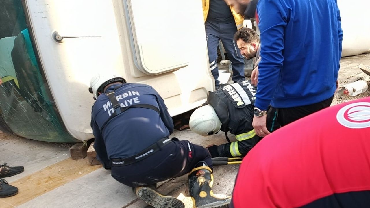 MERSİN (AA) - Mersin'in Erdemli ilçesinde devrilen beton mikserinin sürücüsü yaralandı.