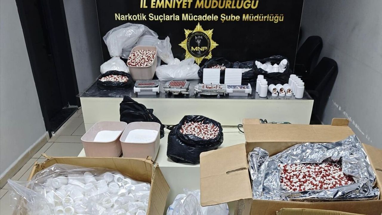 Adreste 65 kilo 250 gram sentetik ecza ham maddesi, 9 bin 912 sentetik ecza, 45 bin 472 doldurulmuş ilaç kapsülü, 135 bin 100 boş ilaç kapsülü, 3 bine yakın ilaç kutusu ve kapağı ile ilaç basımında kullanılan 2 makine ele geçirildi.