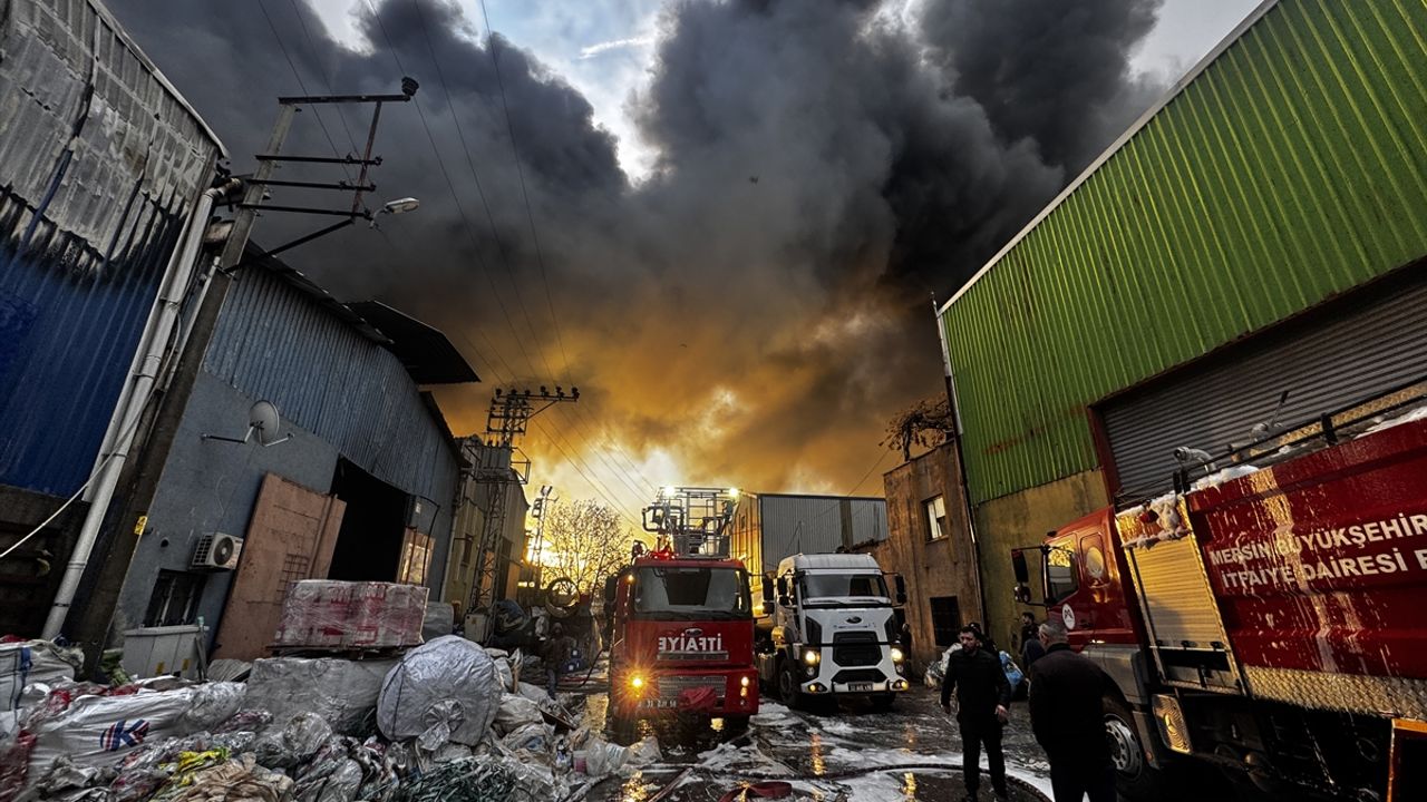 MERSİN (AA) - Mersin'in Toroslar ilçesinde geri dönüşüm fabrikasının deposunda çıkan yangına müdahale ediliyor.