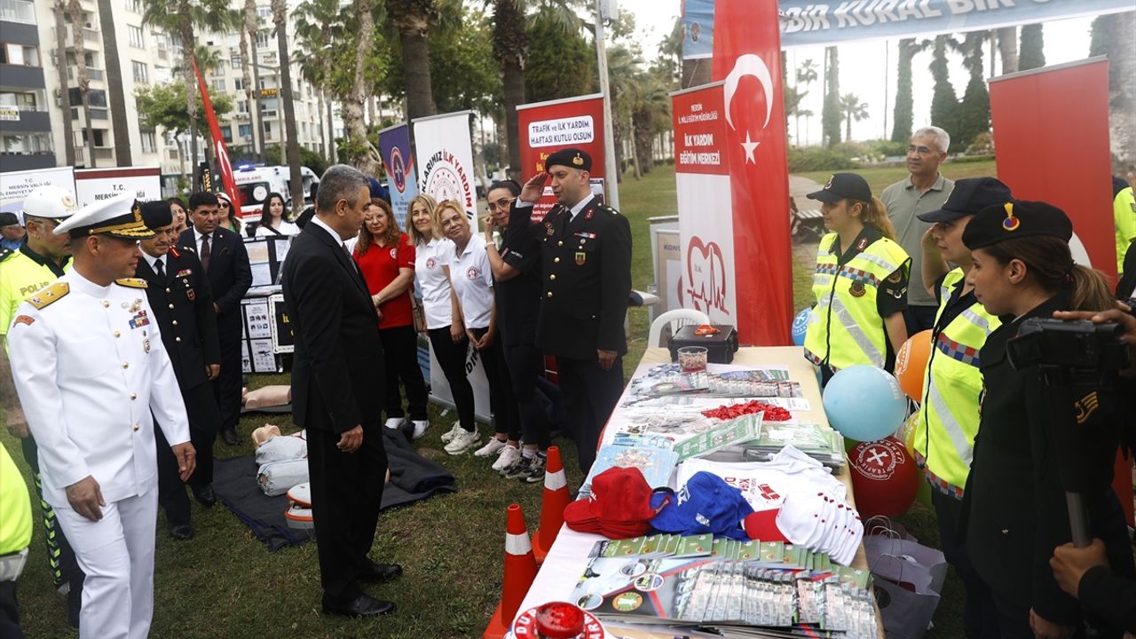 Adnan Menderes Bulvarı'nda "Bir Kural Bir Ömür" temasıyla düzenlenen etkinliğe Vali Atilla Toros, İl Emniyet Müdürü Kamil Karabörk, İl Jandarma Komutanı Tuğgeneral Ercan Atasoy, Sahil Güvenlik Akdeniz Bölge Komutanı Tuğamiral Oğuz Bavbek ve öğrenciler katıldı.