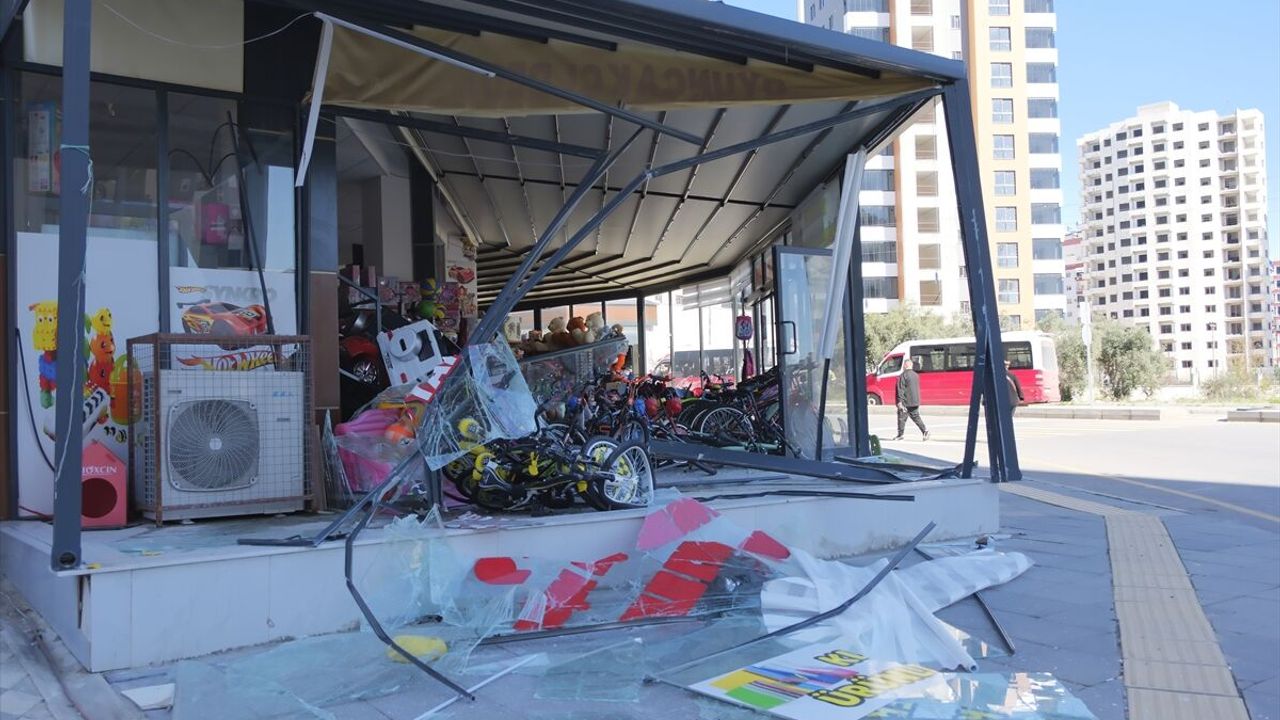 Çarpışmanın etkisiyle minibüs cadde kenarında oyuncak ve bisiklet satışı yapan iş yerine girdi.