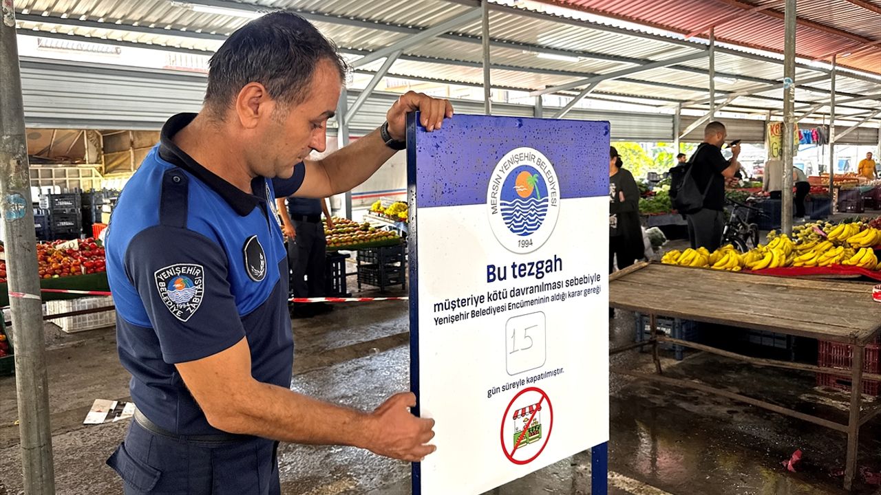 MERSİN (AA) - Mersin'in Yenişehir ilçesinde müşterisine kötü davrandığı belirlenen pazar esnafına 15 gün süreyle tezgah kapatma cezası uygulandı.