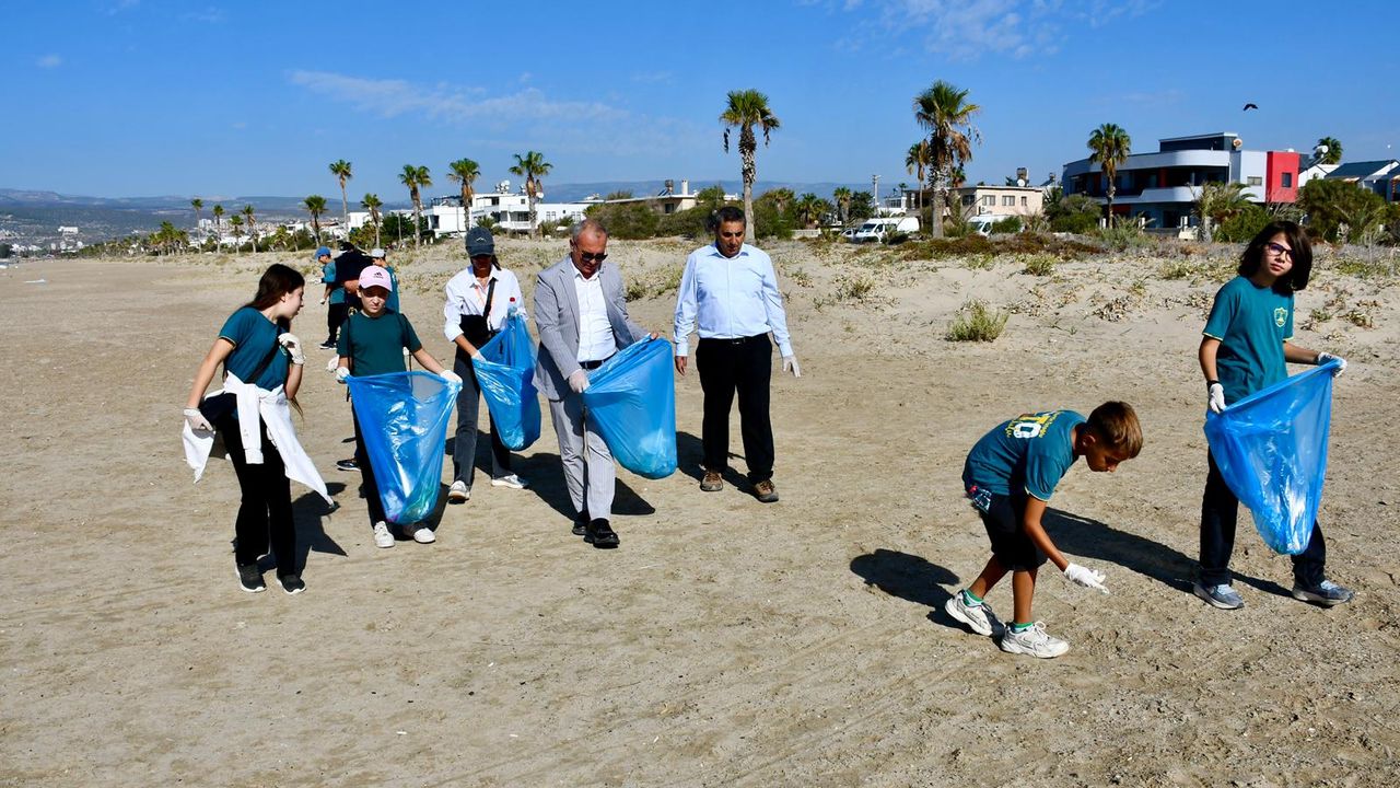 Etkinlikte ilçe protokolü ve öğrenciler sahildeki çöp, plastik ve cam şişe atıklarını topladı.