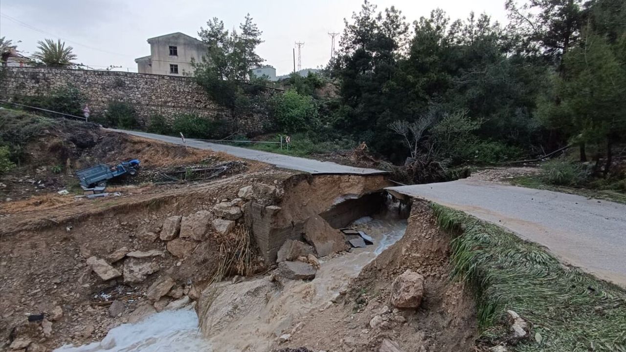 Sağanak yüzünden Keben Mahallesi'ndeki bir yolda çökme yaşandı, seralar zarar gördü.