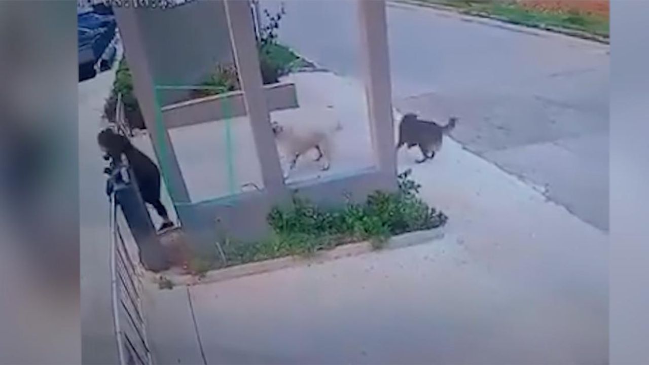 Kadının düşmesinin ardından köpekler bölgeden uzaklaştı.