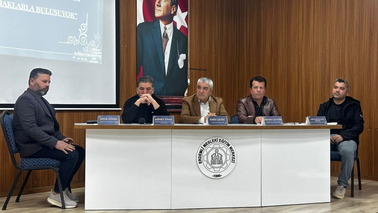 Erdemli Mesleki Eğitim Merkezi Müdürlüğünce Kariyer Günleri kapsamında merkezin toplantı salonunda düzenlenen programa çeşitli iş kollarında uzun yıllar çalışan ustalar ile öğrenciler katıldı.