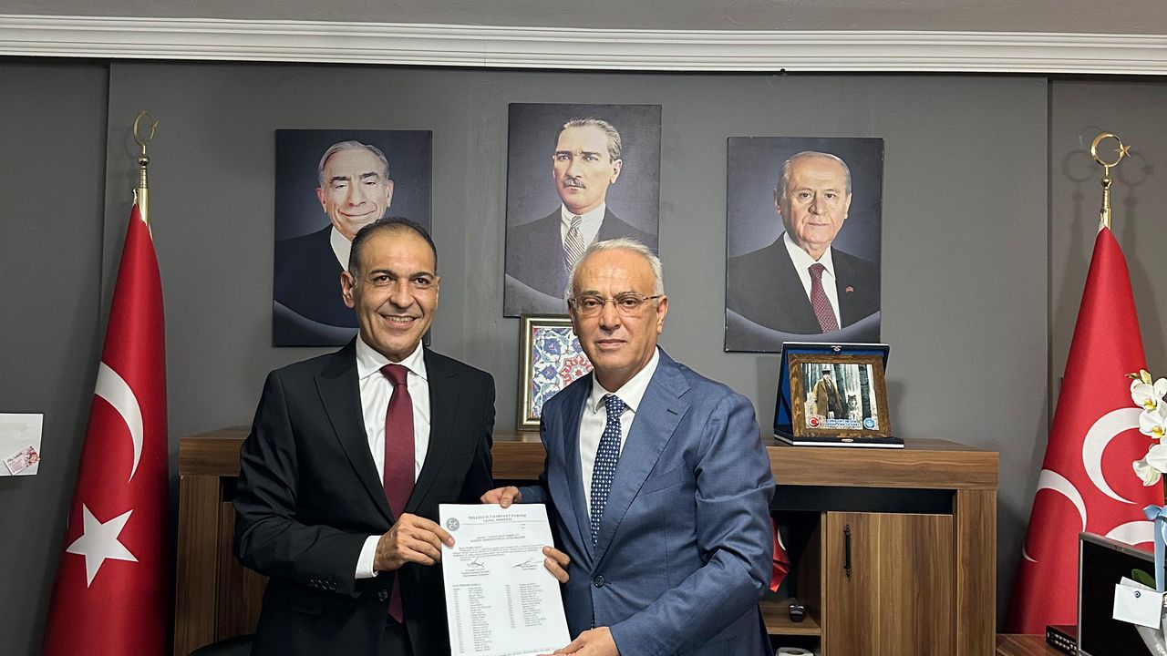 MHP Adana İl Başkanı Yusuf Kanlı, Genel Başkan Devlet Bahçeli'nin onayı ile Genel Başkan Yardımcısı Semih Yalçın'ın gönderdiği yeni yönetim kurulu listesini ve görevlendirme belgesini Aksoy'a verdi.