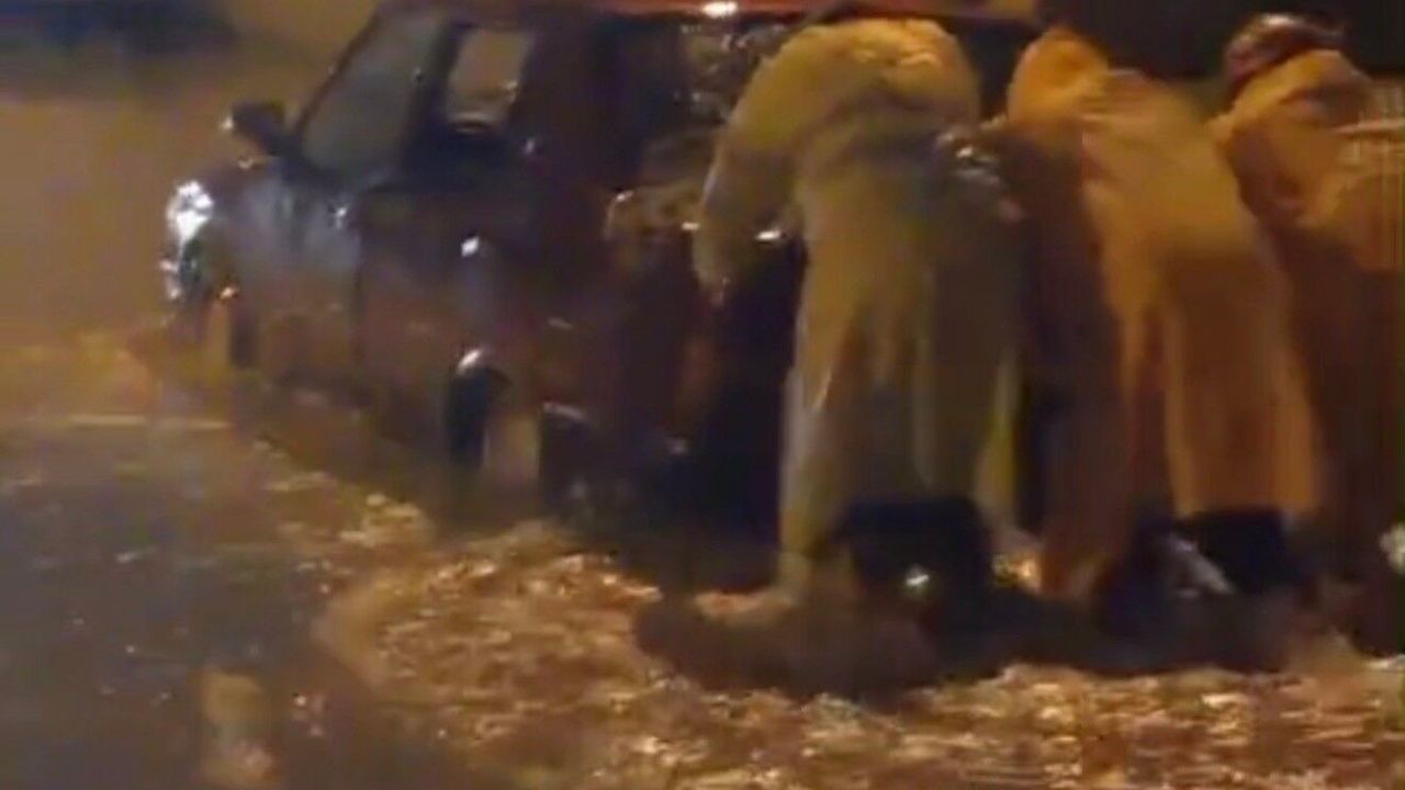 O anlar saniye saniye görüntülenirken ekipler ayrıca yolda kalan bir aracı da sel sularından kurtardı.