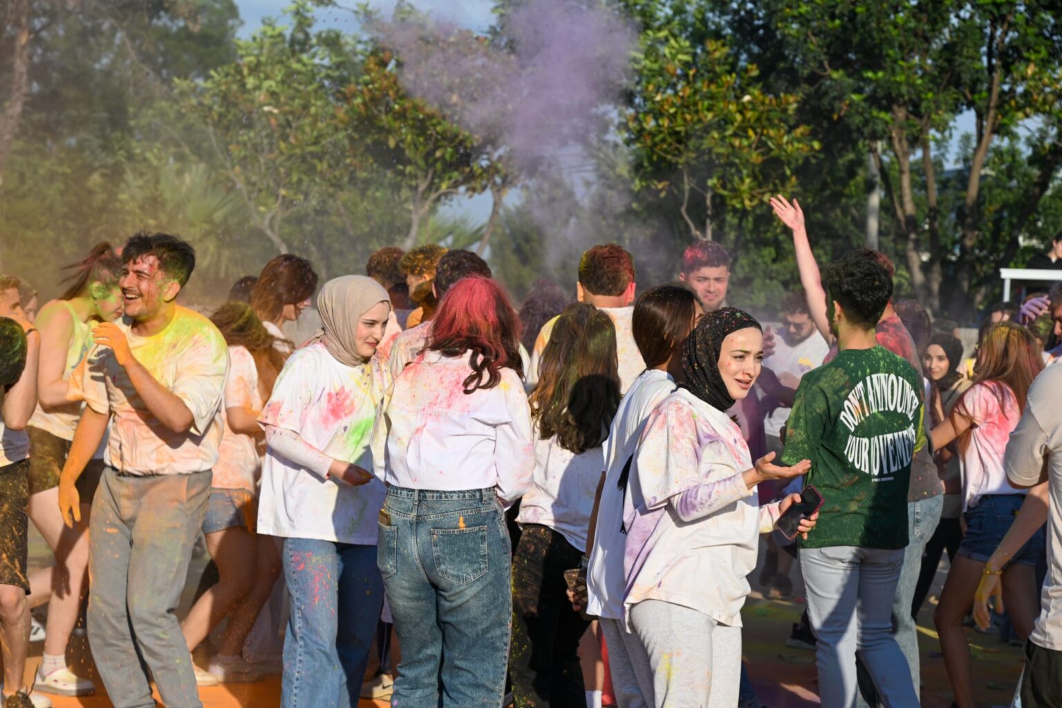 Akşam saatlerinde düzenlenen Color Fest, rengarenk görüntülere sahne oldu. Etkinliğe katılan yüzlerce öğrenci, müzik eşliğinde dans edip birbirlerini renklere boyayarak doyasıya eğlendi. Festival boyunca üniversite kampüsünde eğlence hiç durmadı.