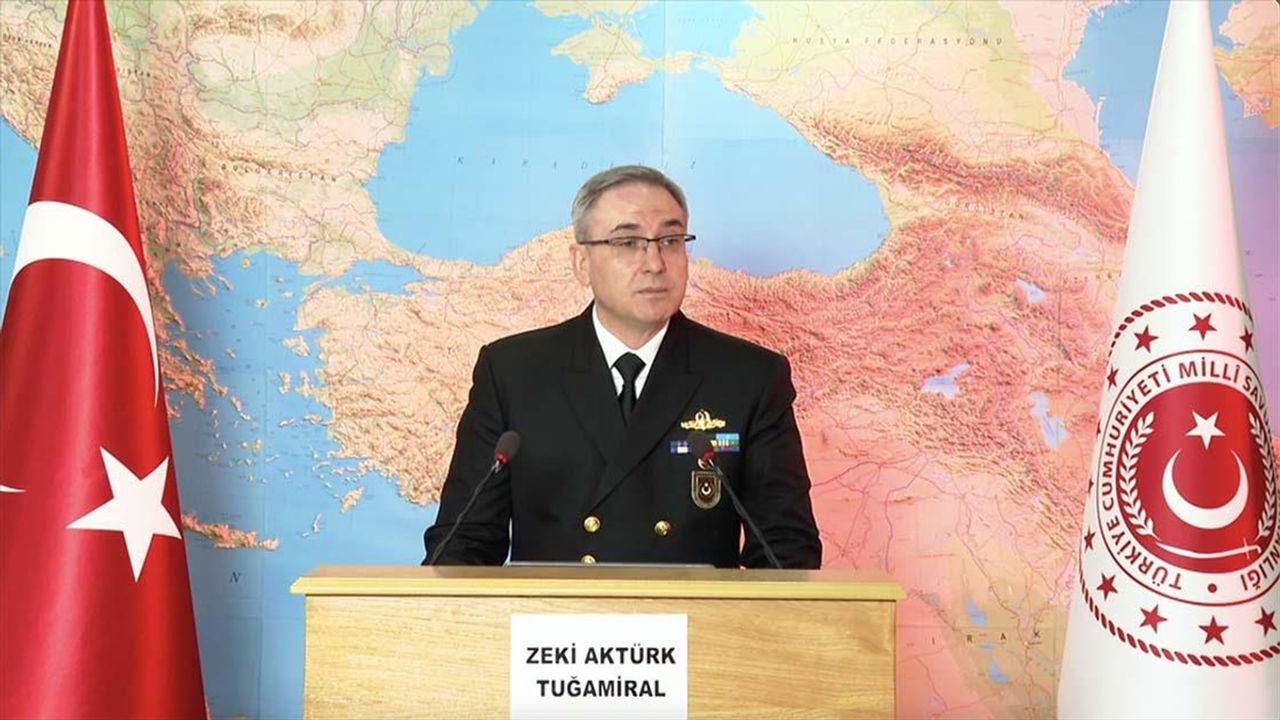ANKARA (AA) - MSB Basın ve Halkla İlişkiler Müşaviri ve Bakanlık Sözcüsü Tuğamiral Zeki Aktürk, Harita Genel Müdürlüğünde düzenlenen haftalık basın bilgilendirme toplantısında konuştu.