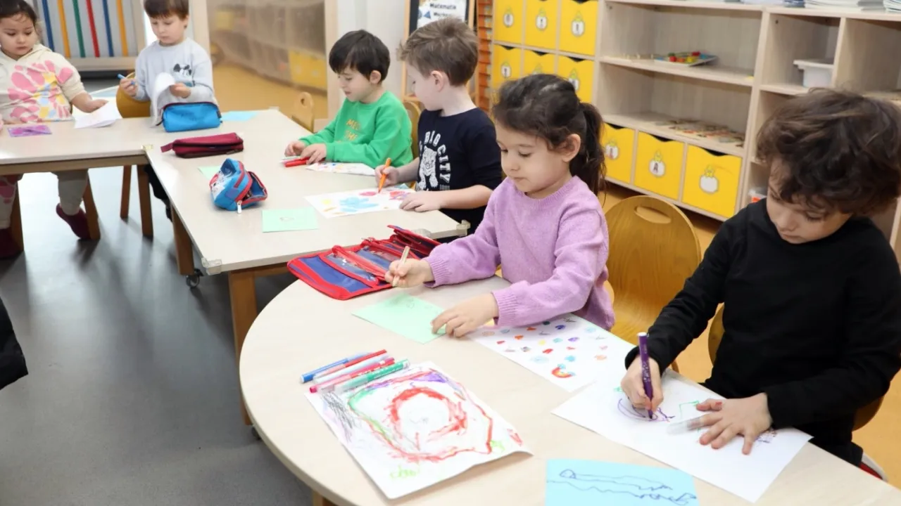 Aileleriyle birlikte mektuplar yazan ve sınıflarında duygularını resimlere döken çocuklar, depremden etkilenen yaşıtları için ev ve oyun parkı dileğinde bulundu.