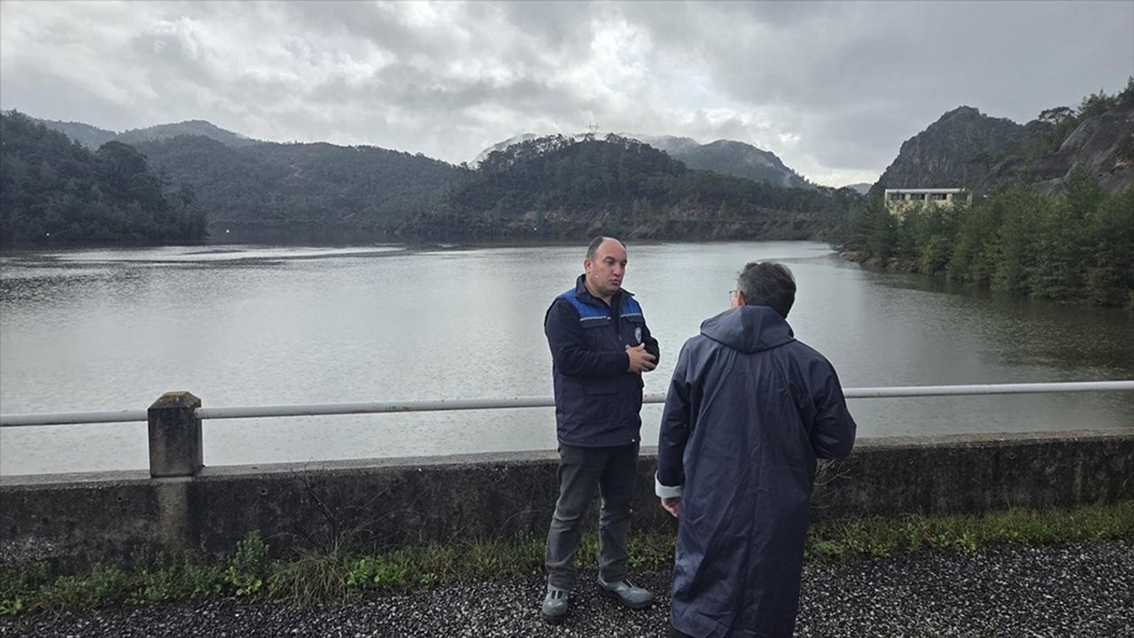 MUĞLA (AA) - Marmaris Kaymakamı Nurullah Kaya, Kocalan Deresi üzerindeki doluluk kapasitesini aşan barajda incelemede bulundu.