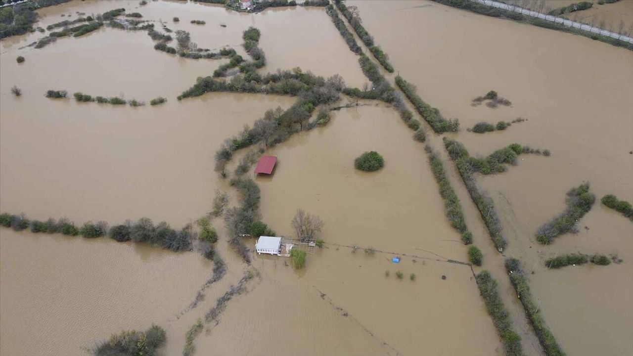Bölgedeki su altında kalan tarım arazileri dronla kaydedildi.
