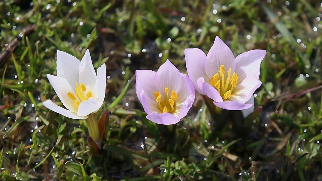 MUŞ (AA) - Muş'ta havanın ısınmaya başlamasıyla Donatım köyü çevresinde çiçek açmaya başlayan çiğdemler, güzel görüntüler oluşturdu.