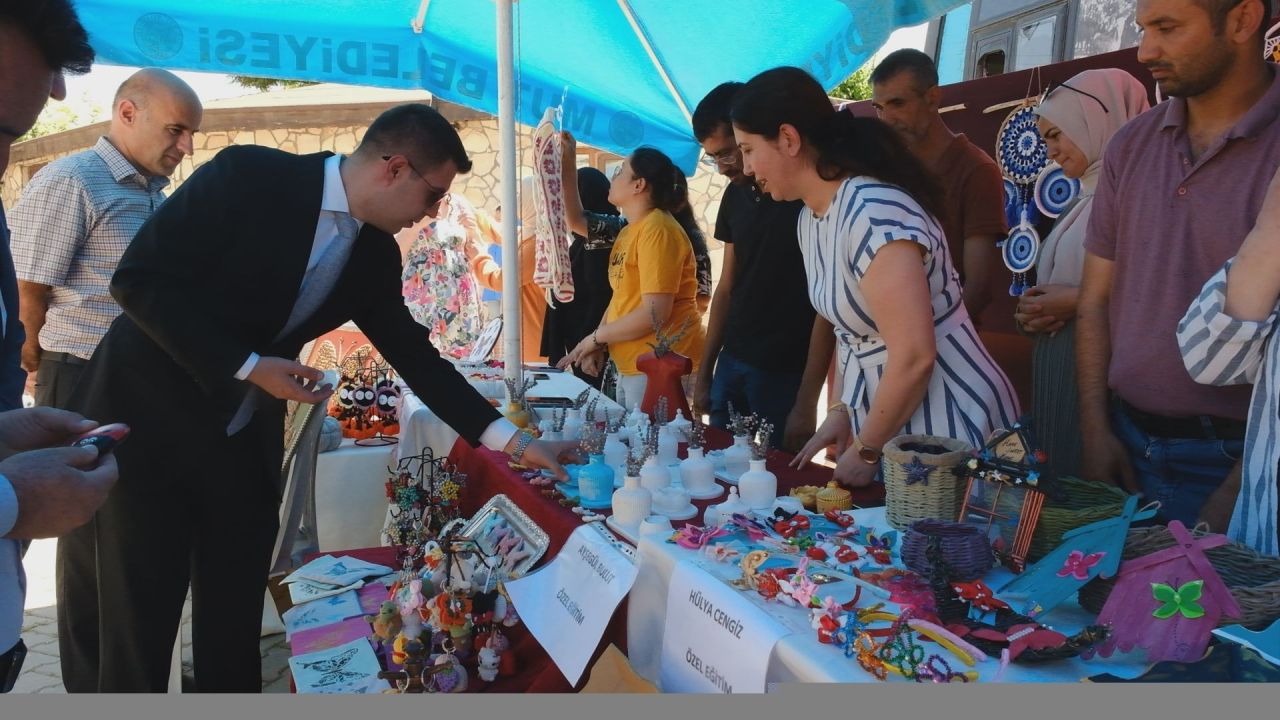 Katılımcılar, el sanatları ve engelli bireylerin hazırladığı ürünlerin yer aldığı stantları gezdi.