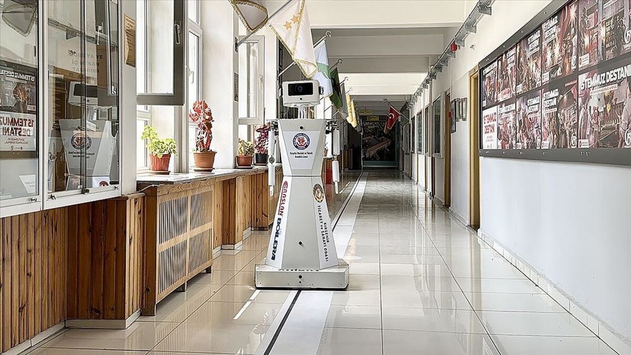 Kırşehir Mesleki ve Teknik Anadolu Lisesinde 4 öğretmen ve 7 öğrenci, okulu tanıtması ve ziyaretçilere rehberlik etmesi amacıyla robot tasarladı.
