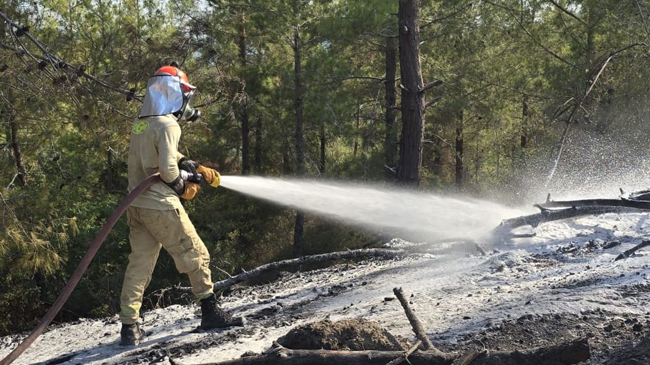Yangında 3 dekarlık ormanlık alan zarar görürken, bölgede soğutma çalışmaları devam ediyor.