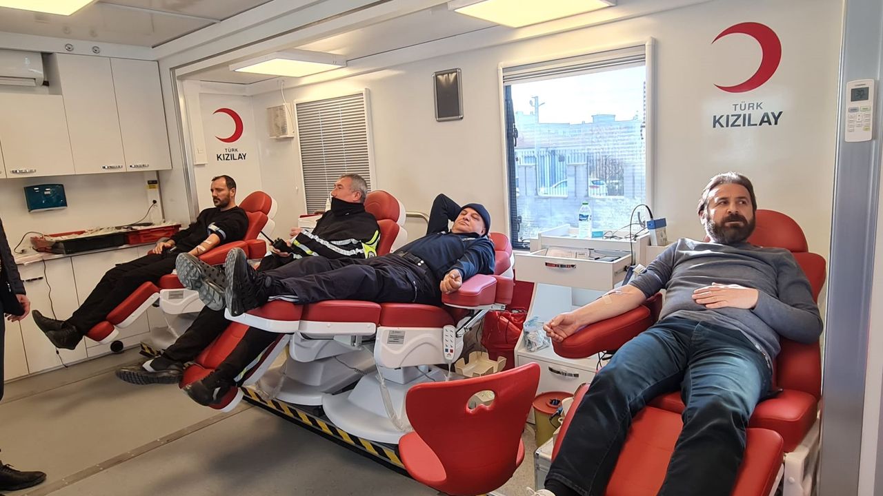 İlçe Emniyet Müdürü Tarık Esat Kahveciler, kan bağışında bulunan personele teşekkür ederek, 'Kan bağışı hem kendi sağlığımız hem de toplum sağlığı için gerekli. Bütün arkadaşlarıma, özellikle emniyet camiamıza kan bağışında bulunmalarını tavsiye ediyorum.' dedi.