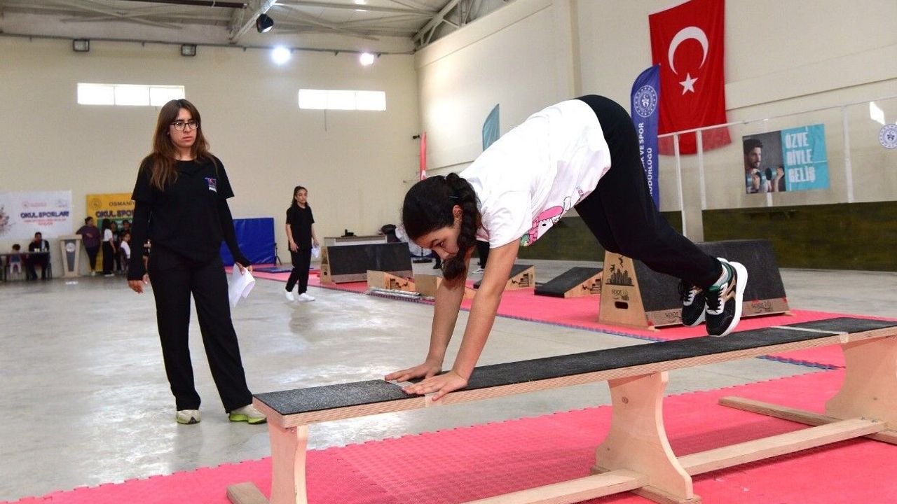 OSMANİYE (AA) - Osmaniye'de okul sporları cimnastik müsabakası gerçekleştirildi.