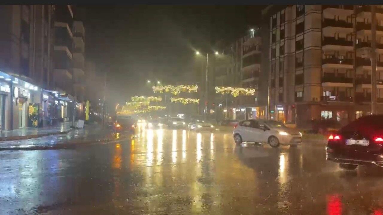 Osmaniye'nin Düziçi ilçesinde akşam saatlerinde etkili olan şiddetli sağanak yağış, ulaşımı olumsuz etkiledi.