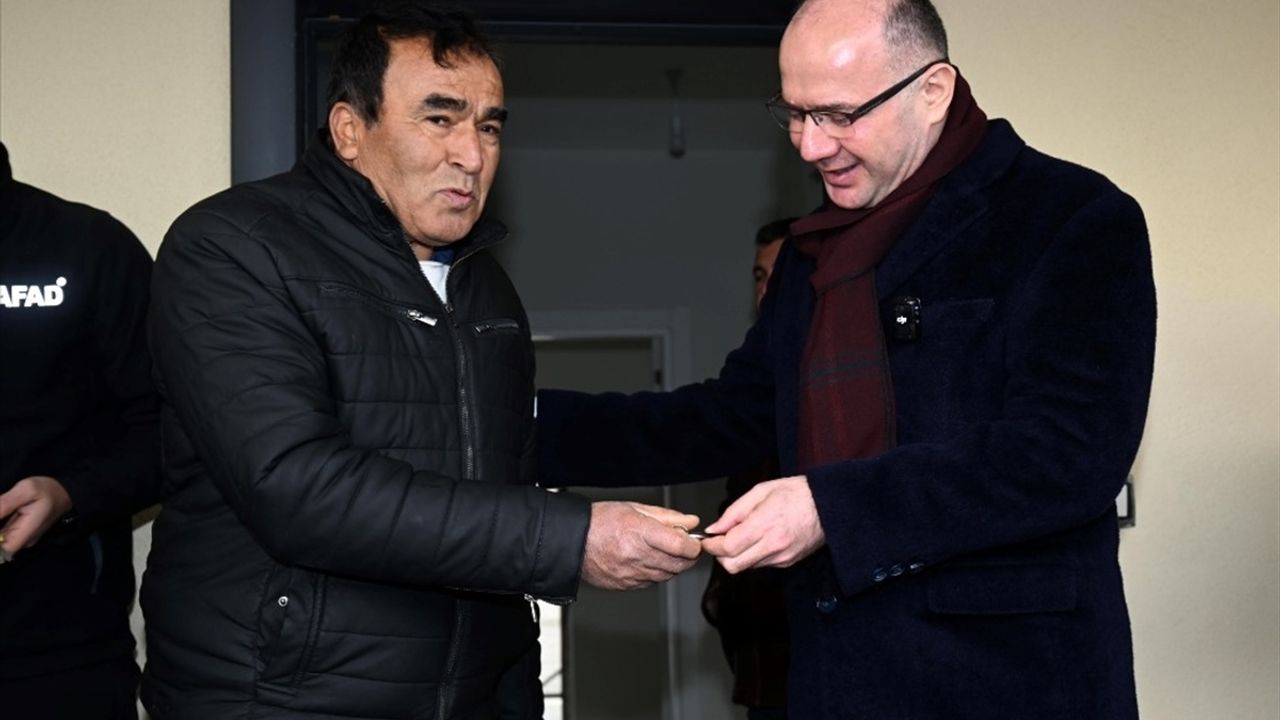 Konuşmasının ardından Serdengeçti, hak sahiplerine köy evlerinin anahtarlarını verdi.