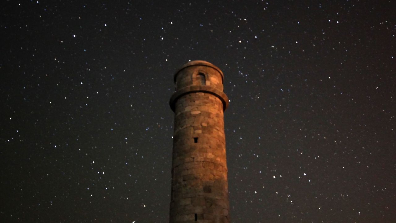 AA ekibince, gece karanlığında uzun pozlama tekniğiyle görüntülenen antik deniz feneri yıldızlar altında da güzel görüntü oluşturdu.
